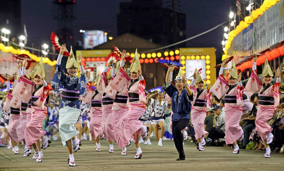 The Tokushima Awa Odori festival gets national television coverage and has become a huge tourist attraction. You can find lots of videos on YouTube.