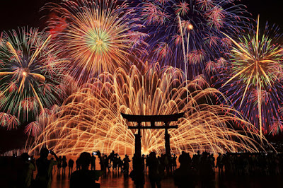 Just about every holiday and local festival in Japan is accompanied by fireworks. Hanabi (花火) literally means "flower" + "fire."